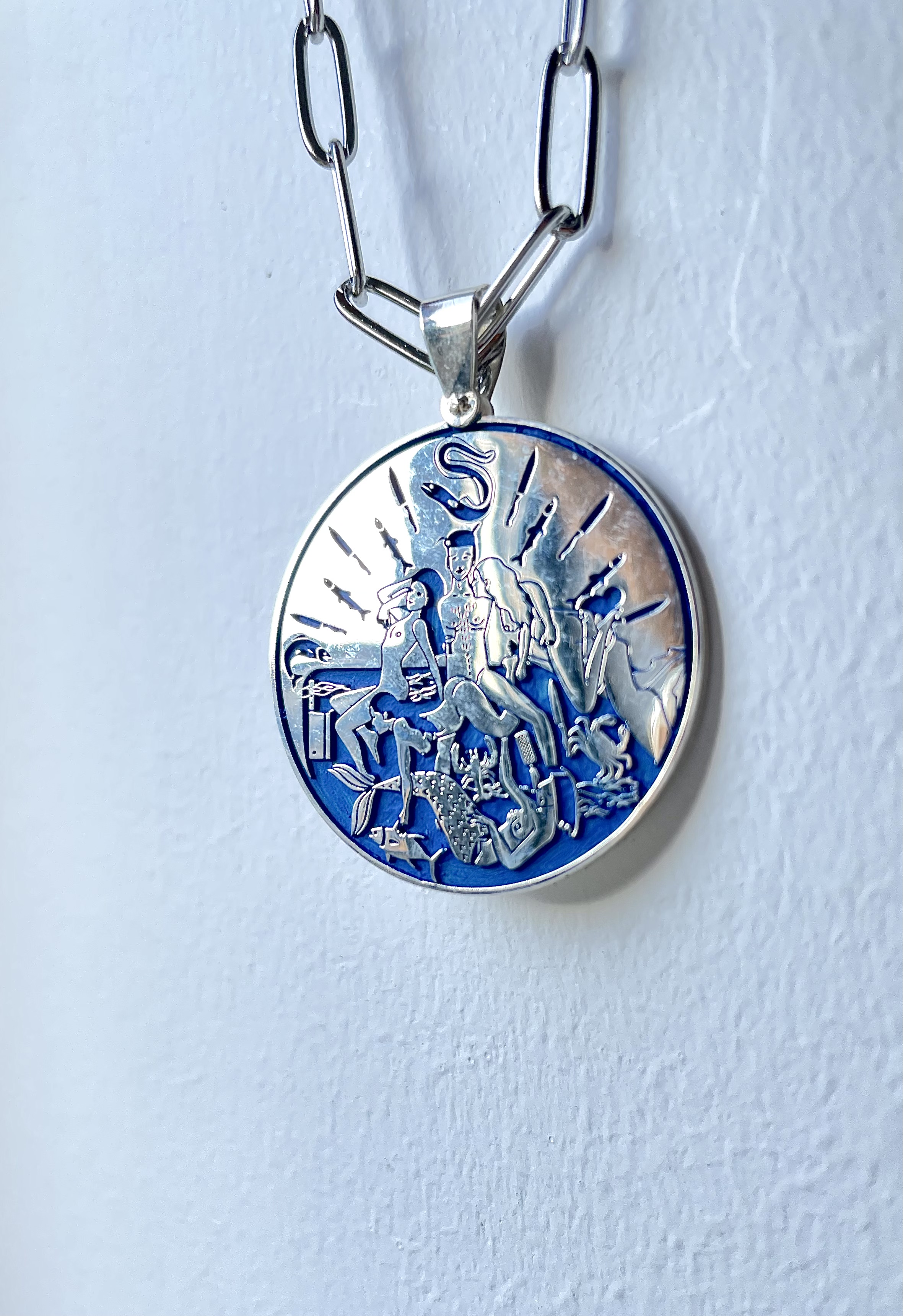 So you want your own pendant, customised message on the back? Your choice of colours? Here you go: select FISH ORGY from the dropdown below to initiate. Made to Order (takes up to 6 weeks).